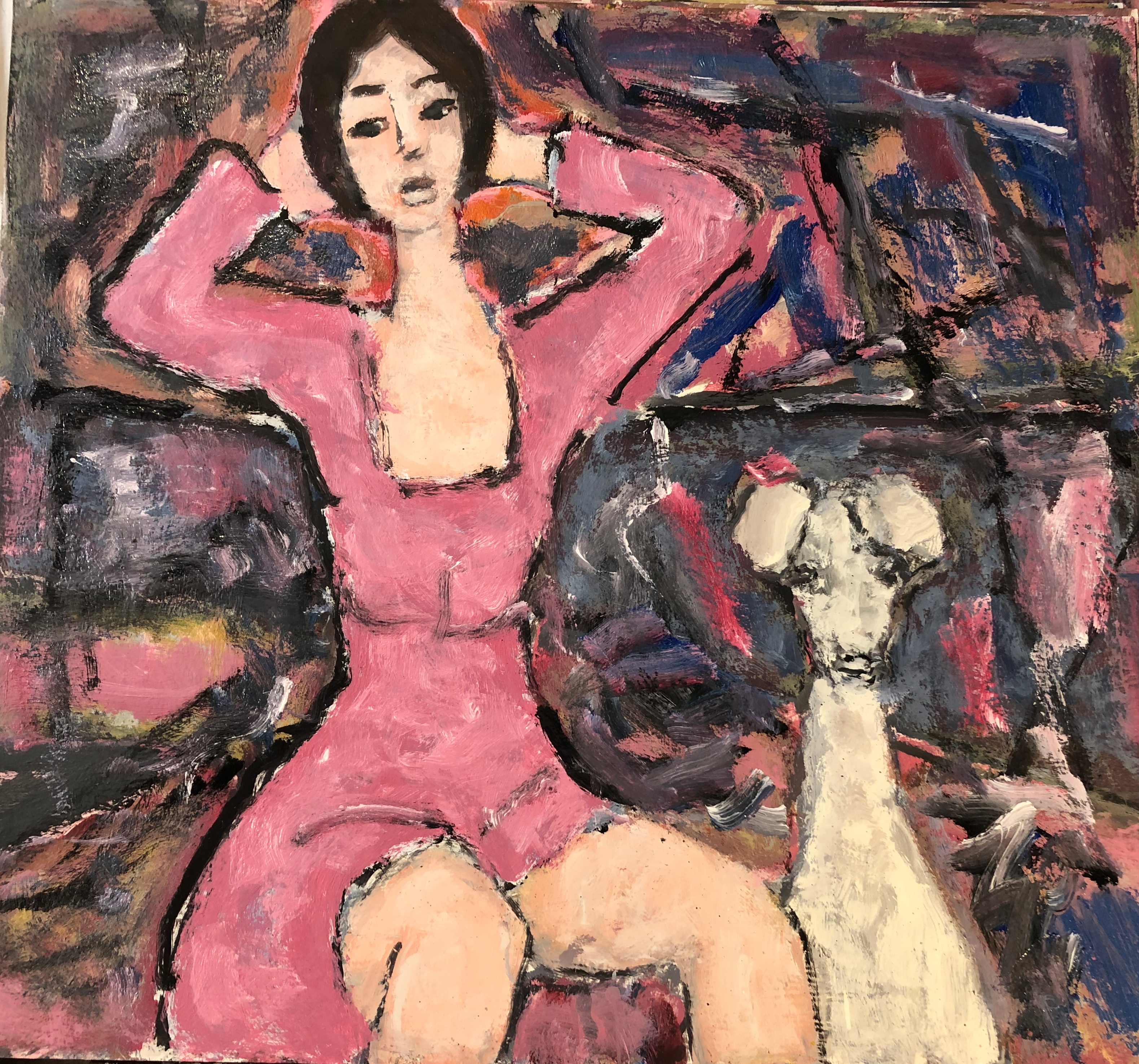portret kobiety w tle obraz abstrakcyjny płyta HDS 90x100cm